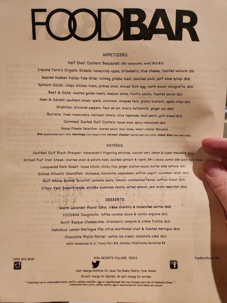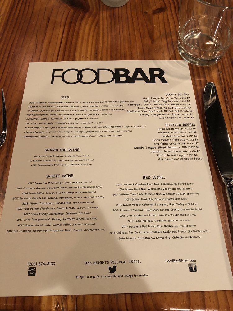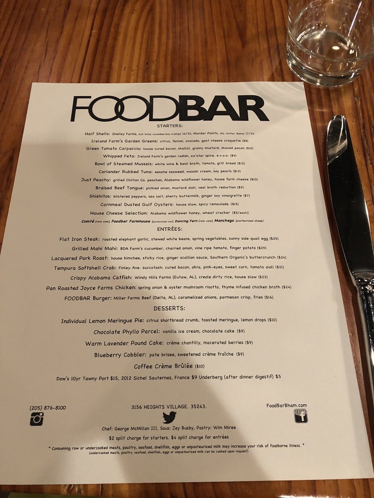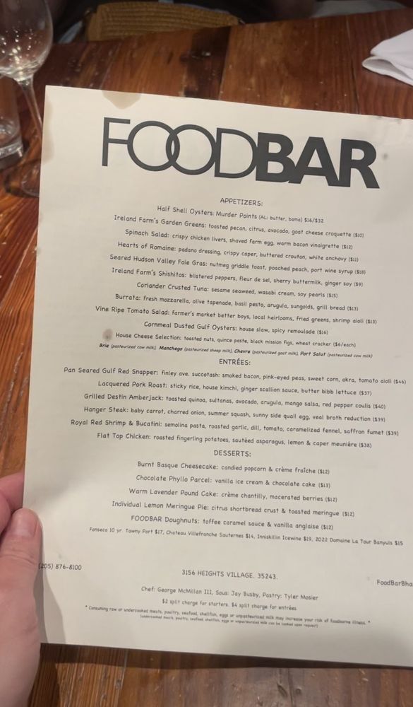 Welcome to FOODBAR, a standout in New American cuisine located in Vestavia Hills, AL. This restaurant prides itself on a menu that blends creativity and comfort, offering dishes that are both unique and flavorful.